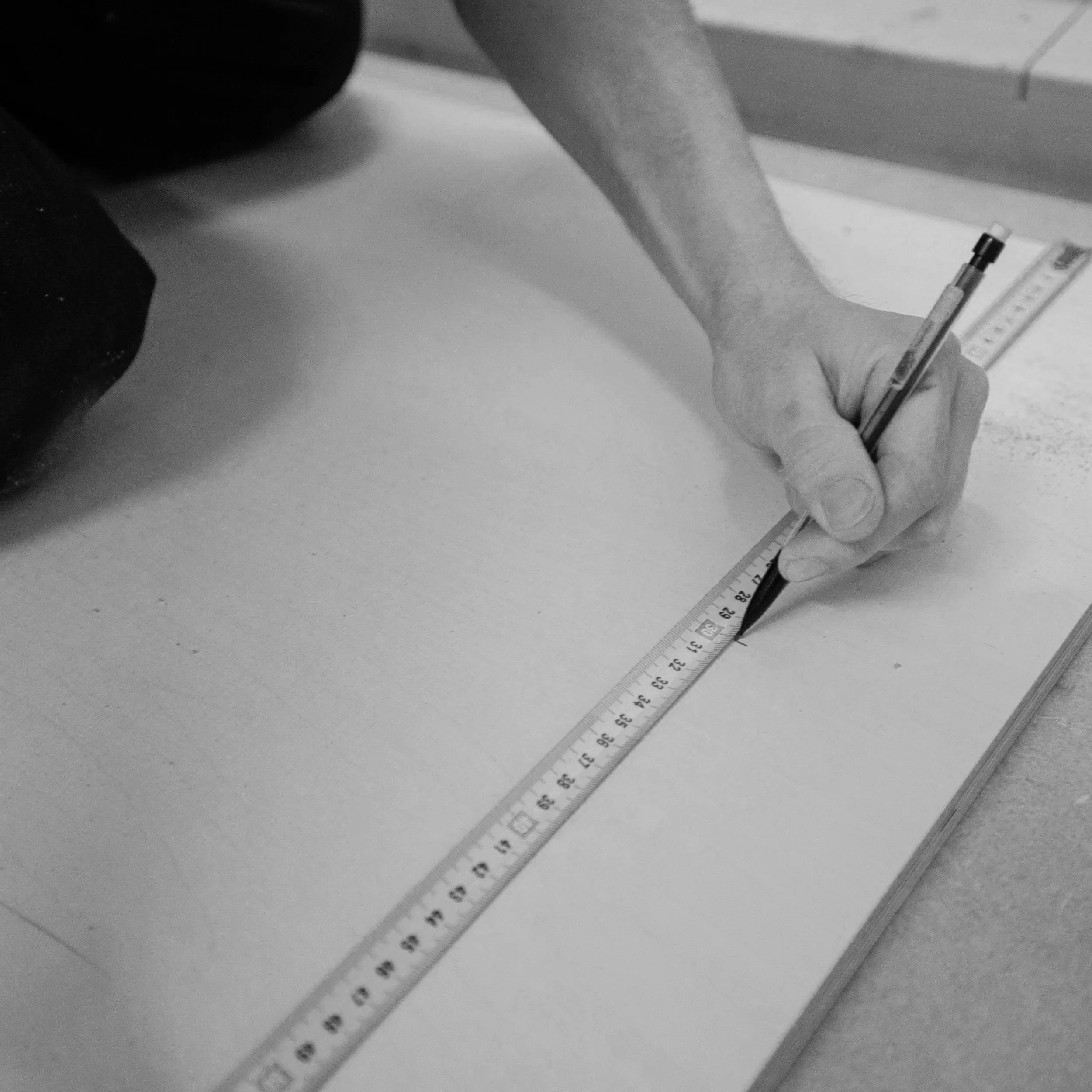 Precise on-site measurements are taken to confirm dimensions and ensure a perfect fit before cabinetry moves into fabrication.